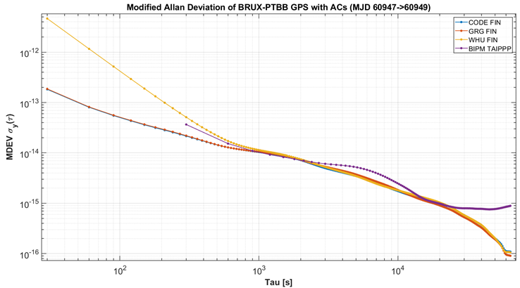 已有研究表明,相较于传统 PPP,IPPP 在长期稳定度方面具备显著优势:IPPP 在典型 10 天平均精度可达到 10⁻¹⁶ 量级,一个月平均精度可优于 10⁻¹⁶ 水平[2](Petit, 2021, GPS Solutions),若时频传递链路实现充分连续,精度可进一步提升。2025 年,BIPM 等机构在 Metrologia 发表论文,对四套整数模糊度固定型 PPP GNSS 时间传递软件方案进行对比,表明该技术路线已从单一方案验证逐步发展到多软件实现对比与一致性评估阶段。